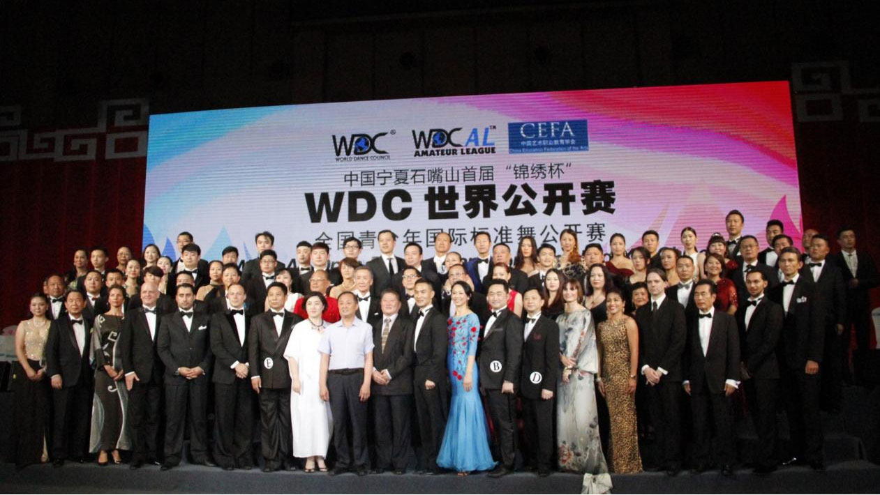 2015年WDC国际标准舞世界公开赛-世界舞蹈总会17成员国参加,图为开幕式全体嘉宾和评审团合影资料(中国·石嘴山)